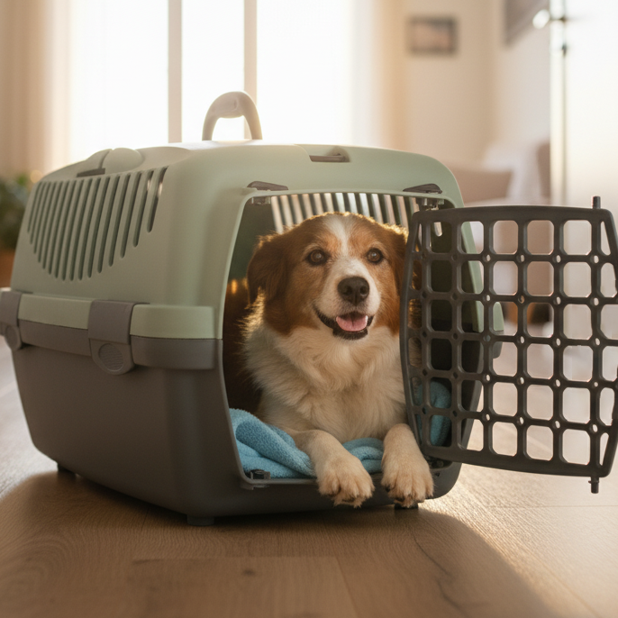 Praktyczne rozwiązanie do podróży. Doskonała wentylacja, zamykane na specjalne zapinki drzwiczki oraz wbudowane gniazda na pasy samochodowe.